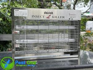 Sử dụng ánh sáng UV kết hợp tấm keo để thu hút và tiêu diệt ruồi, muỗi cùng nhiều loại côn trùng bay khác.